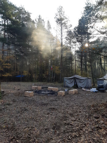 Pierwszy weekend surowy (nie mylić z survivalowy) przeżyliśmy pod patronatem słowa TOŻSAMOŚĆ. Odbyła się gra o historii harcerstwa - pokazująca to skąd się wzięliśmy i gdzie zmierzaliśmy przez 100 lat historii. Do dna przjerzeliśmy metodę i jej źrodła. Zasmakowaliśmy służby, która okazała się bardzo naturalna i potrzebna (pomagaliśmy fundacji ogarniać teren pod Leśne Przedszkole - budowaliśmy most, plac zabaw, łataliśmy dziury w siatkach i stawialiśmy bramę). Spędziliśmy razem 11 listopada - Święto Niepodległości planując jak możemy zmienić świat i jaka jest tu rola harcerstwa. Uczyliśmy się także komunikować. A wieczory w zadumie poświęcaliśmy poznawaniu autorytetów. A ponad to dyskutowaliśmy cały czas, bez przerwy, w dymie z pieców i dymie z ogniska.